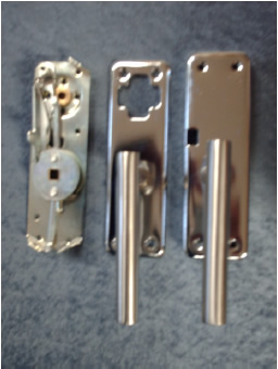 Pari- ja kippiovien lukitukseen tarkoitettu lujatekoinen, pinta-asennettava salpa.- salvan runko kromattua terästä